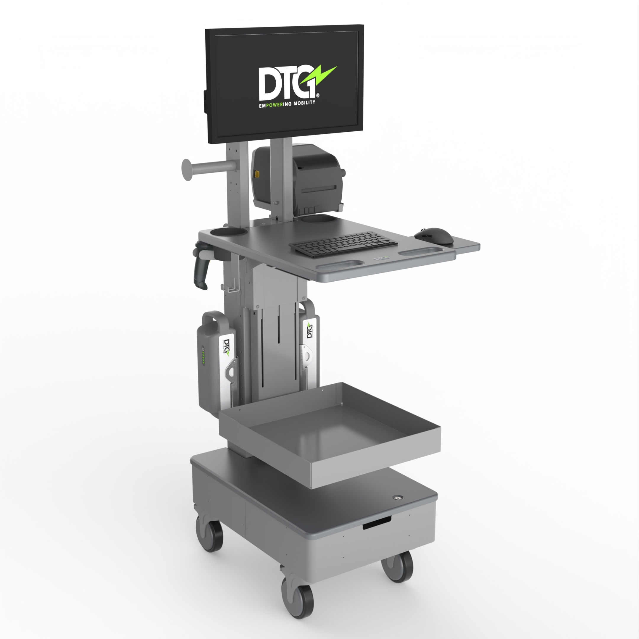 Add a side label printer shelf to any DTG Industrial Workstation.
